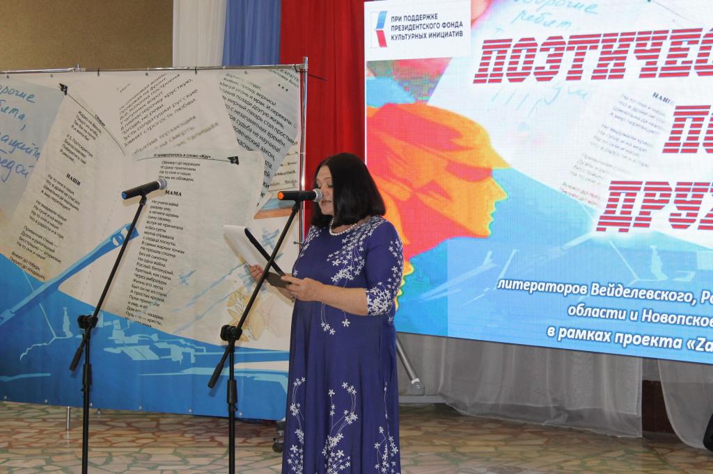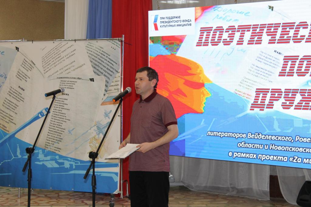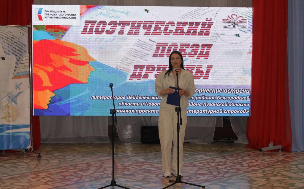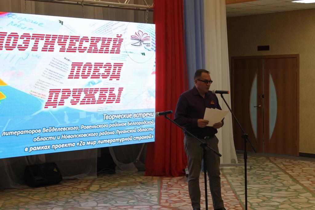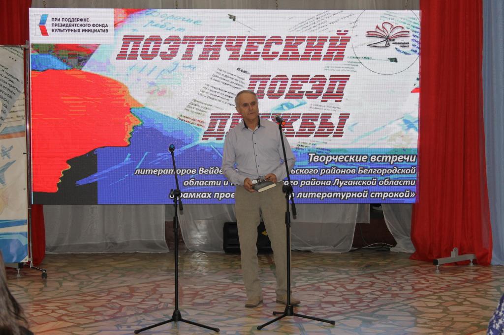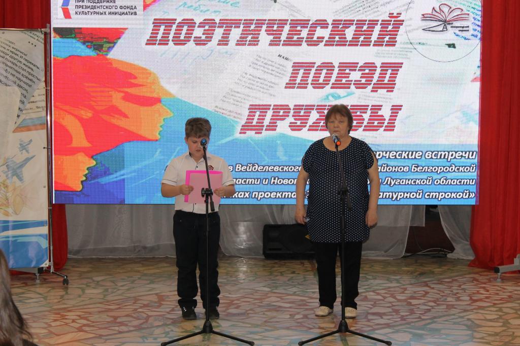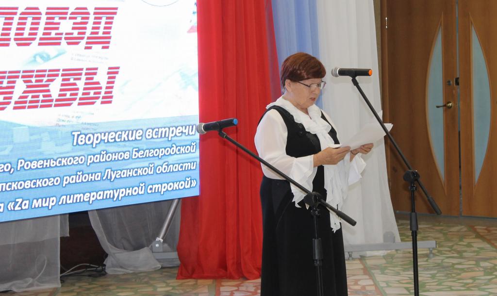 Своим творчеством с молодёжью п. Ровеньки поделились член Новопсковского ЛИТО «Между строк» Валентина Шестопалова и поэт (п. Новопсков Луганской области), члены Союза литераторов Белгородчины поэтесса Ольга Проскурина и ее внук Антон, поэт Петр Сигида (п. Вейделевка Белгородской области) и хозяева поэтической площадки – литераторы Ровеньского района Белгородской области член Союза писателей России Олег Сикарев, поэтессы Людмила Крикунова и Юлия Шилова. В этот же день участники поэтического Поезда дружбы провели несколько творческих встреч с ценителями поэзии в селах Ровеньского района.
